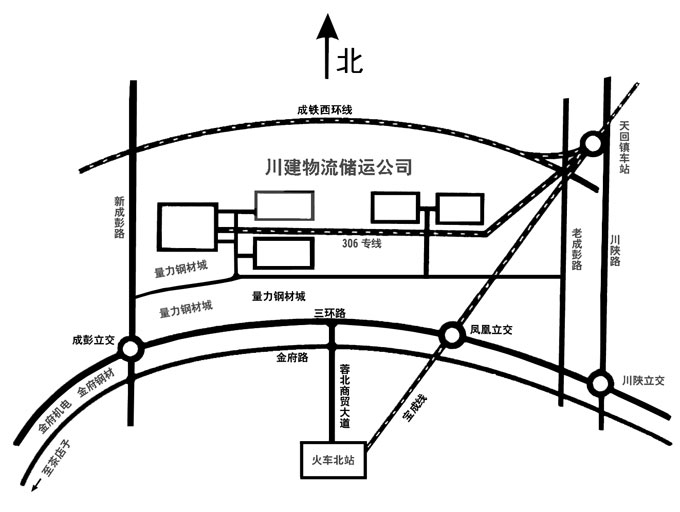 川建物流公司地理位置得天獨厚,地處成都市外北洞子口生資、建材、機電市場黃金地段,三環(huán)路成彭立交橋外200米,西緊靠新成彭公路;東臨國家鐵路寶成線、南通過成都市蓉北商貿(mào)大道僅4公里到達成都火車北站;北有成都鐵路西環(huán)線、成都繞城公路環(huán)繞其外;公司擁有5.8公里306鐵路專線與寶成鐵路在天回鎮(zhèn)接軌,自有GK1C、東方紅5型內(nèi)燃機車各一臺,并有編組站線。四通八達方便快捷,是貨物儲存中轉(zhuǎn)的理想場地。川建物流儲運公司機械化操作程度高,各類裝卸設備齊全,有8噸、16噸、50噸汽車吊各一臺;有C7022、C5530、H3/36B等塔式起重機5臺;10噸、20噸行車3臺;3噸叉車2臺。本公司還有專業(yè)運輸車隊,各型載重汽車數(shù)十輛,并具有維修各種工程機械、汽柴油機動車輛的能力和資格。