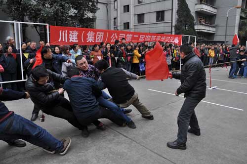 2015年1月,川建(集團(tuán))開展“迎春拔河比賽”活動(dòng),活動(dòng)主旨為豐富員工的文化生活,增強(qiáng)員工的體育鍛煉意識,提高團(tuán)隊(duì)合作精神,進(jìn)一步增強(qiáng)企業(yè)凝聚力。