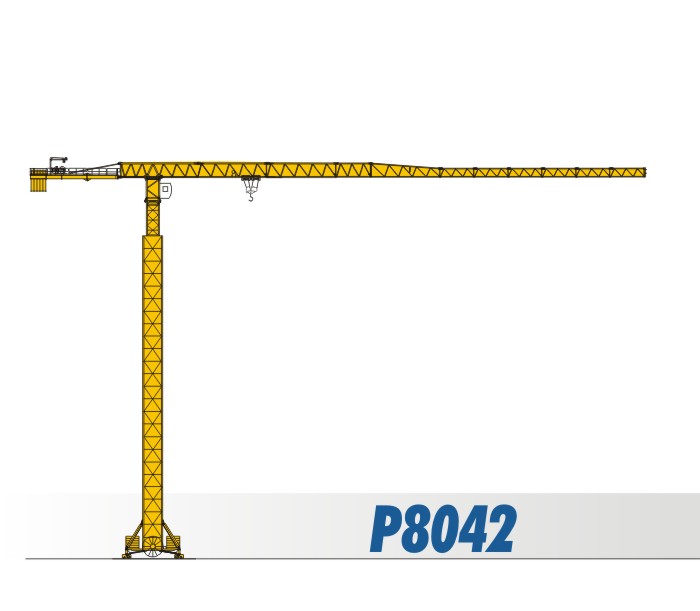 臂長組合:80m 75m 70m 65m 60m 55m 50m 端部吊重:2.9t(80m)/4.2t(80m) 最大吊重:25t(17.3m)